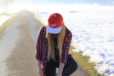 Keywords: woman lady cap hat snow winter road female people girl white