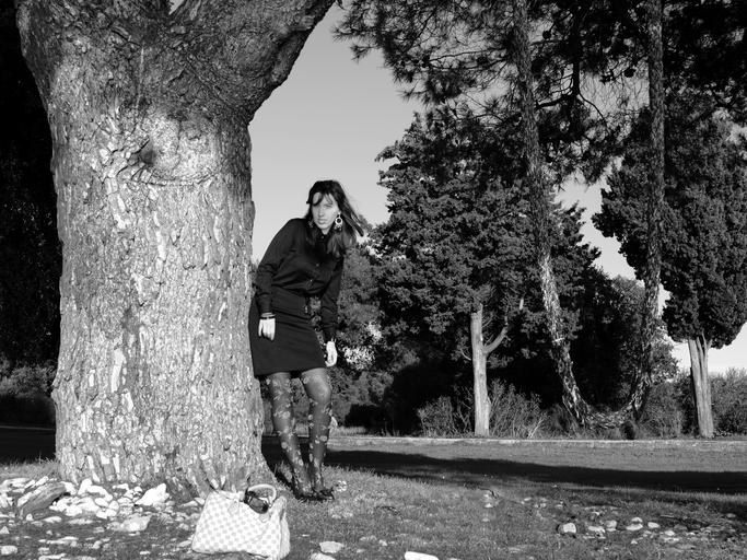 Keywords: woman outdoor female black and white lifestyle nature tree swing girl