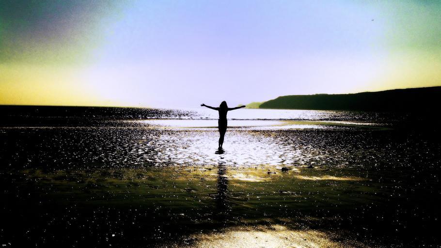 Keywords: woman people shadow sea beach sunset vacation swimming water sand light effect nature season background
