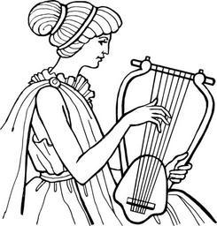 Keywords: woman playing musical instruments strings compose composing songs ancient lifestyle female lady girl young youth black and white musician enjoying fun hobby