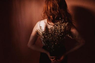 Keywords: woman portrait backwards female young attractive person model hair skin lady woman portrait bouquet shadow fashion brunette head studio