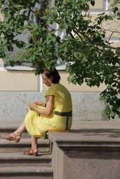 Keywords: woman shadow read yellow dress summer