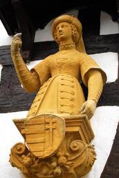 Keywords: woman shield castle art statue stonework stone sculpture artwork ancient historical artistic creative creativity design structure