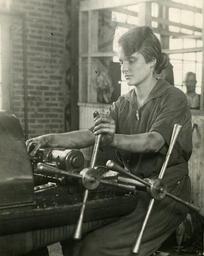 | Keywords: Woman shipyard machinist.jpg Photograph en The woman in oil-soaked blue overalls has made her appearance in the Newark N J shipyards She has not yet joined the riveters - probably she never will - but she has entered the machine shop The Submarine Boat Corporation started the experiment with only seven pioneers but according to an announcement made yesterday by Dr Henry Moskowitz industrial consultant of the firm the number will be steadily increased as the men now presiding over the machines are called in the draft This is the first time women have been used in the construction work of the shipyards thought they have been used in the administrative and clerical positions for some time <br> Photo shows - at the rivet sharp cutting machine 1 photo Institution National Archives and Records Administration 1919-01-08 accession number National Archives and Records Administration <gallery> File 86-G-7A25 tif tif </gallery> PD-USGov PD-USGov-DOL NARA-cooperation Uploaded with UploadWizard Files from NARA ExtravaSCANza United States Department of Labor Photographs of World War I Women at work in the United States Newark New Jersey |