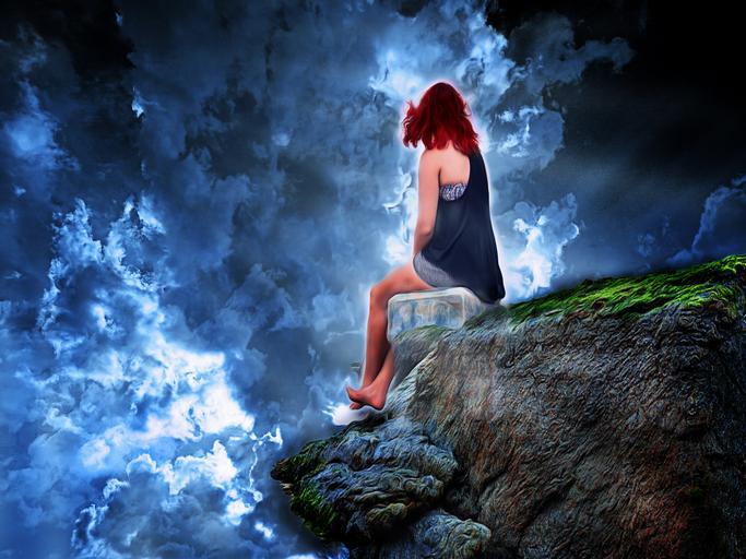 Keywords: woman sky rock composing photo art blue digital art nature fantasy