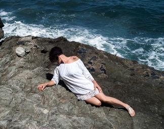 Keywords: woman summer rock sun relaxation holiday only romantic sea girl young woman seaside