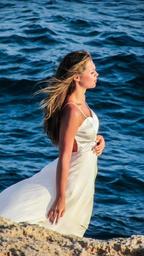 Keywords: woman sunset sea rock sun summer romantic cliff