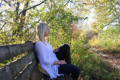 Keywords: woman thinking bench profile side-profile thought-provoking thinking woman girl female young face portrait student model autumn fall
