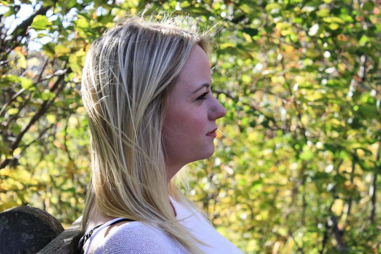 Keywords: woman thinking profile side-profile thought-provoking thinking woman girl female young face portrait student model autumn fall