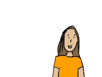 Keywords: woman upper body brown orange comic cartoon smile look forward faces cartoons face laugh