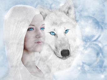 Keywords: woman wolf dog eyes long hair mood person pretty