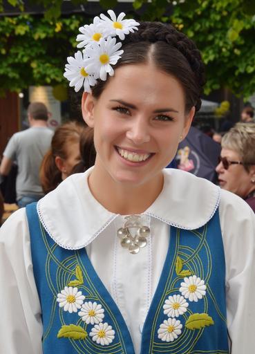 Keywords: woman young lady lady tradition sweden national costume clothing costume show symbol person female girl happy young brunette smiling face portrait dress