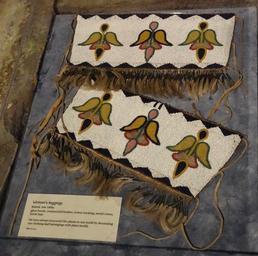 | Keywords: Woman's leggings, Kainai, late 1800s, glass beads, commercial leather, cotton backing, metal cones, horse hair - Glenbow Museum - DSC00978.JPG en Exhibit in the Glenbow Museum 130 9th Ave S E Calgary Alberta Canada This work is old enough so that it is in the public domain Photography was permitted in the museum without restriction 2013-09-21 12 38 07 own Daderot cc-zero Aboriginal peoples clothing in the Glenbow Museum Uploaded with UploadWizard Káínawa clothing | ||||