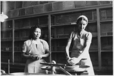 | Keywords: Women make pottery on the potter wheel - NARA - 285574.jpg Scope and content General notes 285574 Local identifier Federal Security Agency Civilian Conservation Corps Indian Division Pine Ridge Office 07/01/1939 - 1943 NARA's Central Plains Region Kansas City NREA 400 West Pershing Road Kansas City MO 64108 1941 Record group Record Group 75 Records of the Bureau of Indian Affairs 1793 - 1999 Record group ARC 404 Reports of Activities compiled 02/05/1934 - 12/31/1941 Series ARC 285571 File unit File unit ARC Variant control numbers NAIL Control Number NRE-75-PRSERIES230-2584 Other versions <gallery> File Women_make_pottery_on_the_potter_wheel_-_NARA_-_285574 tif tif File Women_make_pottery_on_the_potter_wheel_-_NARA_-_285574 jpg jpg </gallery> NARA-cooperation PD-USGov Oglala Lakota 1940 Potters with pottery Native American artists NARA images of South Dakota South Dakota in the 1940s Women at work in the United States Black and white photographs of South Dakota Black and white photographs of standing women Pine Ridge Indian Reservation 1940 1941 photographs |