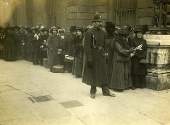 | Keywords: the women's library thewomenslibrary women suffrage politics hires monochrome 7JCC/O/02/051 Photograph, printed, paper, monochrome, a long line of women, many carrying suitcases, outside Bow Street, a policeman at the head of the queue; printed inscription on reverse 'Copyright photograph Barratt, 8 Salisbury Court, Fleet St, EC' 7JCC/O/02/051 Photograph, printed, paper, monochrome, a long line of women, many carrying suitcases, outside Bow Street, a policeman at the head of the queue; printed inscription on reverse 'Copyright photograph Barratt, 8 Salisbury Court, Fleet St, EC' |