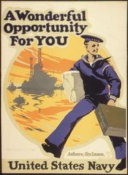 | Keywords: "Wonderful Opportunity For You. Ashore, On Leave. United States Navy", ca. 1917 - ca. 1917 - NARA - 512440.jpg Local identifier 4-P-1 U S Food Administration Educational Division Advertising Section 01/15/1918 - 01/1919 Still Picture Records Section Special Media Archives Services Division NWCS-S National Archives at College Park 8601 Adelphi Road College Park MD 20740-6001 other date circa 1917 1917 Record group Record Group 4 Records of the U S Food Administration 1917 - 1920 Record group ARC 333 World War I Posters compiled 1917 - 1919 Series ARC 512439 Variant control numbers NAIL Control Number NWDNS-4-P-1 General notes Scope and content File unit File unit ARC Other versions <gallery> File Wonderful_Opportunity_For_You _Ashore _On_Leave _United_States_Navy _ca _1917_-_ca _1917_-_NARA_-_512440 tif TIFF File Wonderful_Opportunity_For_You _Ashore _On_Leave _United_States_Navy _ca _1917_-_ca _1917_-_NARA_-_512440 jpg JPG </gallery> NARA-cooperation PD-USGov World War I recruitment posters from the United States Propaganda of advertising sections of the United States ImageNote 1 105 2730 1875 245 2185 3000 2 United States Navy ImageNoteEnd 1 ImageNote 2 1125 2575 685 125 2185 3000 2 Ashore On Leave ImageNoteEnd 2 ImageNote 3 1660 1900 160 345 2185 3000 2 XYZ Seaman U S N ImageNoteEnd 3 ImageNote 4 40 135 1485 670 2185 3000 2 A Wonderful Opportunity For YOU ImageNoteEnd 4 ImageNote 5 1540 650 185 85 2185 3000 2 USS ImageNoteEnd 5 ImageNote 6 75 2530 550 80 2185 3000 2 14 East 23rd St N Y City ImageNoteEnd 6 ImageNote 7 1670 2585 250 165 2185 3000 2 RKC 2 RUTTAN ImageNoteEnd 7 |