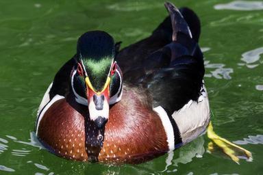 Keywords: wood duck macro bird water fowl swimming portrait wildlife nature