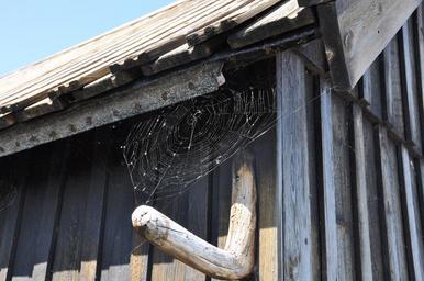 Keywords: wood shed spider cobwebs solar facade house fisherman