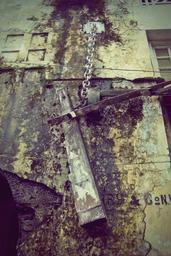 Keywords: wood steel architecture old building broken down structure vintage damaged destruction construction dirty wall
