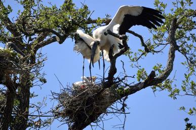 Keywords: wood stork nesting stork bird nature nest white wildlife wild wings tree animal florida sky beak feathers plumage large flight flying black americana wading everglades swamp wader sanctuary wetland seabird