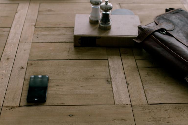 Keywords: wood table iphone cell mobile technology leather briefcase bag salt pepper shakers book