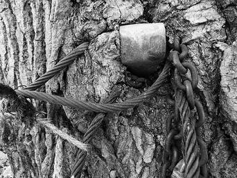 Keywords: b&w bw tree trunk rope chains texture blackandwhite monochrome outdoor plant tangle black and white