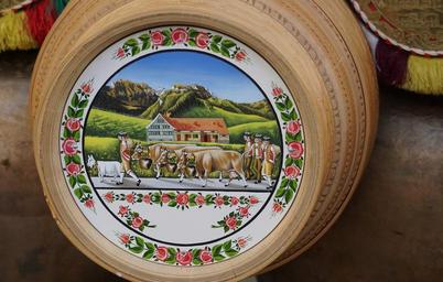 Keywords: wooden bucket bucket milk bucket wheeled bucket ground painted peasant art appenzell customs tradition art painting switzerland