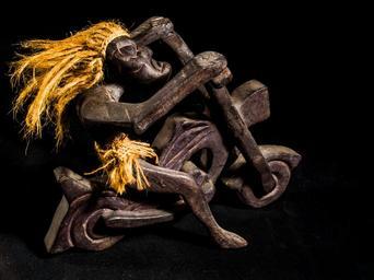 Keywords: wooden motorbike with driver wild hairstyle wood model art from thailand