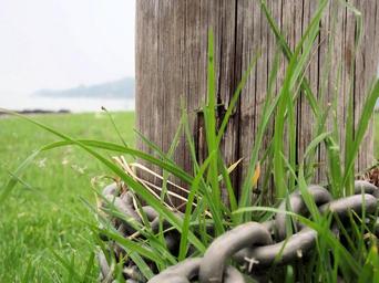 Keywords: wooden pole chain grass nature green chained