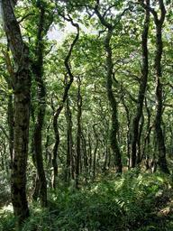 Keywords: woodland trees forest dappled landscape gnarled foliage branches summer nature wood