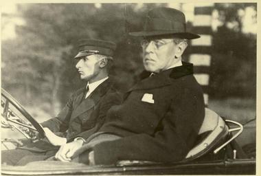 | Keywords: president wilson chauffeur george howard georgehoward monochrome Local Accession Number: 1245 Description: President Wilson, with his chauffeur George Howard. Photographer: Unknown Source: Unknown Size: 7x9.5 Medium: Print, Black and White Date: Unknown Local Accession Number: 1245 Description: President Wilson, with his chauffeur George Howard. Photographer: Unknown Source: Unknown Size: 7x9.5 Medium: Print, Black and White Date: Unknown | ||||
