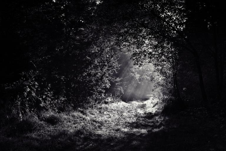 Keywords: woods path forest dark night light spooky trail foliage environment mystery mysterious footpath pathway woodland enchanted