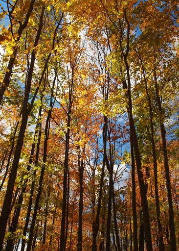 Keywords: woods trees leaves sun sunny blue sky sky yellow orange fall autumn