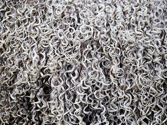 Keywords: wool fleece sheep woollen coat ringlet curl hair shear shearing knit knitting white grey black lanolin textile raw material fiber fibre strands weave tangle wavy texture