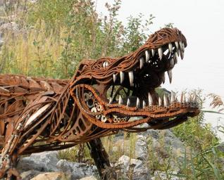Keywords: work of art teeth crocodile iron rusted brown skeleton