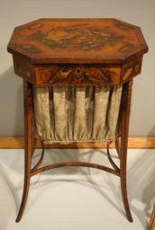 | Keywords: Work table, signed 'Vose & Coates' by Isaac Vose and Joshua Coates, Boston, Massachusetts, 1809-1812, maple with basswood, nyssa, aspen, original painted decoration, replaced bag - Winterthur Museum - DSC01391.JPG en Exhibit in the Winterthur Museum New Castle County Delaware USA Photography was permitted in the museum without restriction This work is in the public domain because the artist died more than 70 years ago 2013-05-08 10 53 02 own Daderot cc-zero Furniture in Winterthur Museum Uploaded with UploadWizard Federal furniture |