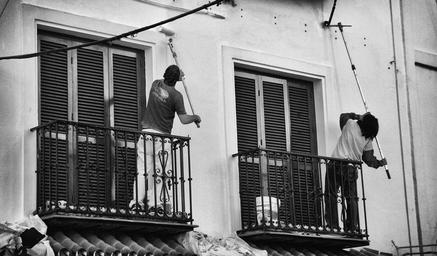 Keywords: worker wash window man service clean cleaner work peopl white black cooperation