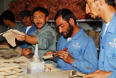 | Keywords: Workers at the Kabul Melli factory handcraft combat boots for Afghan forces (4919576632).jpg 100822-N-1159B-128 KABUL Afghanistan July 22 2010 “ Workers at the Kabul Milli factory handcraft combat boots for Afghan forces U S Navy Rear Adm Kathleen Dussault commander of Task Force 2010 presented the factory with a quality assurance certificate that will allow it to formally supply boots to Afghan National Security Forces Located in the Afghan capital of Kabul the Afghan-owned factory can produce about 2 400 boots a day U S Navy photo by Chief Mass Communication Specialist Brian Brannon / Released http //www flickr com/photos/ntm-a_cstc-a/4919576632/ Workers at the Kabul Melli factory handcraft combat boots for Afghan forces Uploaded by russavia 2010-08-22 02 13 http //www flickr com/people/44825691 N08 NATO Training Mission-Afghanistan Attribution-ShareAlike License IPTC Caption-Abstract U S Navy photo PD-USGov-Military-Navy File Upload Bot Magnus Manske 2013-07-13 Bootmaking People of Kabul Files from NATO Training Mission-Afghanistan Flickr stream Files uploaded by Russavia 2010 in Afghanistan |