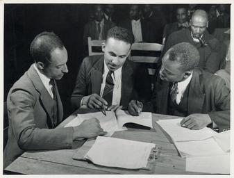 | Keywords: new york public library newyorkpubliclibrary dc:identifier=http://digitalgallery.nypl.org/nypldigital/id?1260117 dc:identifier=httpdigitalgallerynyplorgnypldigitalid1260117 xmlns:dc=http://purl.org/dc/elements/1.1/ xmlns:dc=httppurlorgdcelements11 dc:coverage=1940 maps north carolina northcarolina african american men africanamericanmen granville county granvillecounty n.c. nc yanceyville meetings land use landuse marion post wolcott marionpostwolcott indoor blackandwhite black and white Digital ID: 1260117. Working on the county maps at the colored County Land Use Planning Committee Meeting in the school house in Yanceyville, Caswell County, N.C. William L. Gilmore, teacher in Caswell County Training School, is Secretary of meeting. Oct 1940.. Wolcott, Marion Post -- Photographer. October 1940 Notes: Original negative #: 56346-D Source: Farm Security Administration Collection. / North Carolina. / Marion Post Wolcott. (more info) Repository: The New York Public Library. Schomburg Center for Research in Black Culture. Photographs and Prints Division. See more information about this image and others at NYPL Digital Gallery. Persistent URL: digitalgallery.nypl.org/nypldigital/id?1260117 Rights Info: No known copyright restrictions; may be subject to third party rights (for more information, click here) Digital ID: 1260117. Working on the county maps at the colored County Land Use Planning Committee Meeting in the school house in Yanceyville, Caswell County, N.C. William L. Gilmore, teacher in Caswell County Training School, is Secretary of meeting. Oct 1940.. Wolcott, Marion Post -- Photographer. October 1940 Notes: Original negative #: 56346-D Source: Farm Security Administration Collection. / North Carolina. / Marion Post Wolcott. (more info) Repository: The New York Public Library. Schomburg Center for Research in Black Culture. Photographs and Prints Division. See more information about this image and others at NYPL Digital Gallery. Persistent URL: digitalgallery.nypl.org/nypldigital/id?1260117 Rights Info: No known copyright restrictions; may be subject to third party rights (for more information, click here) Digital ID: 1260117. Working on the county maps at the colored County Land Use Planning Committee Meeting in the school house in Yanceyville, Caswell County, N.C. William L. Gilmore, teacher in Caswell County Training School, is Secretary of meeting. Oct 1940.. Wolcott, Marion Post -- Photographer. October 1940