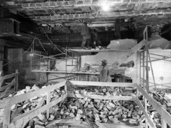 | Keywords: nara:arcid=6982097 blackandwhite monochrome black and white Original Caption: Workmen Removing a Wall of the White House during the Renovation, 4/12/1950 Created By: National Archives and Records Administration. Office of Presidential Libraries. Harry S. Truman Library. (04/01/1985 - ) From: Series: Photographs Relating to the Administration, Family, and Personal Life of Harry S. Truman, compiled 1957 - 2004, documenting the period 1849 - 2004 Contact: Harry S. Truman Library (NLHST), 500 West U.S. Highway 24, Independence, MO, 64050-1798. PHONE: 816-268-8272; FAX: 816-268-8295; EMAIL:truman.reference@nara.gov. Production Dates: 4/12/1950 Scope and Content Note: Unidentified workmen are shown removing the west wall between the Rose Room and the main stairway of the White House. The whole bricks are being separated for storage. Persistent URL: arcweb.archives.gov/arc/action/ExternalIdSearch?id=6982097 Truman Library URL: www.trumanlibrary.org/photographs/view.php?id=18729 Access Restrictions: Unrestricted Use Restrictions: Unrestricted Original Caption: Workmen Removing a Wall of the White House during the Renovation, 4/12/1950 Created By: National Archives and Records Administration. Office of Presidential Libraries. Harry S. Truman Library. (04/01/1985 - ) From: Series: Photographs Relating to the Administration, Family, and Personal Life of Harry S. Truman, compiled 1957 - 2004, documenting the period 1849 - 2004 Contact: Harry S. Truman Library (NLHST), 500 West U.S. Highway 24, Independence, MO, 64050-1798. PHONE: 816-268-8272; FAX: 816-268-8295; EMAIL:truman.reference@nara.gov. Production Dates: 4/12/1950 Scope and Content Note: Unidentified workmen are shown removing the west wall between the Rose Room and the main stairway of the White House. The whole bricks are being separated for storage. Persistent URL: arcweb.archives.gov/arc/action/ExternalIdSearch?id=6982097 Truman Library URL: www.trumanlibrary.org/photographs/view.php?id=18729 Access Restrictions: Unrestricted Use Restrictions: Unrestricted |