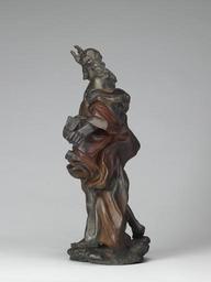 | Keywords: Workshop of Gian Lorenzo Bernini - The Risen Christ - Walters 542281 - View E.jpg In 1673 Bernini was commissioned by Pope Clement X to design gilded figures of the twelve apostles and the Risen Christ to crown the tabernacle of the Chapel of the Blessed Sacrament in St Peter's Basilica Working from Bernini's designs Giovanni Rinaldi made the models Girolamo Lucenti the bronze founder had problems casting the Risen Christ and the initial bronze cast had a flaw across its chest This cast now partially repaired and in the Walters' collection was left in a rough state The model was recast gilded and installed in St Peter's Christ's idealized body recalls ancient sculptures of the sun-god Apollo praised as having a perfect physique His striding pose is beautifully balanced while his ascent toward heaven is suggested by the deeply carved fluttering drapery seemingly responding to an invisible wind and creating a strong play of light and shadow Bernini was the greatest sculptor of his age He imbued figures of both metal and marble with an unsurpassed sense of life and motion between 1673 1674 Baroque bronze cm 44 accession number 54 2281 1418 Henry Walters Baltimore formerly in the Baltimore office of Henry Walters date and mode of acquisition unknown C Morgan Marshall date and mode of acquisition unknown Walters Art Museum Gift of C Morgan Marshall 1942 Going for Baroque The Walters Art Gallery Baltimore 1995-1996 Vatican Treasures Early Christian Renaissance and Baroque Art from the Papal Collections The Cleveland Museum of Art Cleveland 1998 A Magnificent Age Masterpieces from the Walters Art Museum Baltimore The Nelson-Atkins Museum of Art Kansas City; Mint Museum of Art Charlotte; The Walters Art Museum Baltimore 2002-2004 The Sculpture of Gianlorenzo Bernini Kimbell Art Museum Fort Worth 1982 The Taste of Maryland Art Collecting in Maryland 1800-1934 The Walters Art Gallery Baltimore 1984 The Allure of Bronze The Walters Art Gallery Baltimore 1995 place of origin Rome Italy Walters Art Museum license Baroque sculpture in the Walters Art Museum Sculptures by Gianlorenzo Bernini Media contributed by the Walters Art Museum needs category review |