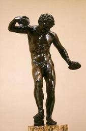 | Keywords: Workshop of Massimiliano Soldani Benzi - Dancing Faun - Walters 54674.jpg The faun a creature of the woodlands in Greco-Roman mythology identified by his horns and pointed ears plays the cymbals and works a clapper with his right foot Soldani made multiple versions in different sizes of this figure a copy of a famous life-size ancient Hellenistic marble statue which was already in the Uffizi gallery in Florence This small size is perfect for a collector as it can be easily picked up This statuette can be compared with the two groups by Soldani Adonis Mourned by Venus and Cupids Walters 54 677 and The Dead Christ Mourned by the Virgin and an Angel Walters 54 1066 They all share an attention to the tactile qualities of the surface but the others are complex pieces that demonstrate his artistic imagination and originality in composition ca 1705 bronze with brown varnish patina cm 29 4 accession number 54 674 5809 Caruso Collection Sale American Art Association New York 1923 no 1003 as Paduan Henry Walters Baltimore date of aquisition unknown by purchase Walters Art Museum Henry Walters Acquired by Henry Walters The Allure of Bronze The Walters Art Gallery Baltimore 1995 place of origin Florence Italy Walters Art Museum license Baroque sculpture in the Walters Art Museum Massimiliano Soldani Benzi Statues of dancing fauns Media contributed by the Walters Art Museum needs category review Nude or partially nude people with cymbals Dancing satyr from the group «Invitation to the dance» |