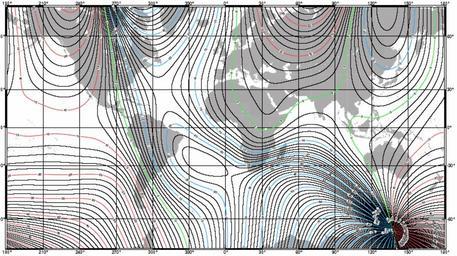 | Keywords: World Magnetic Declination Map 2005.png World Magnetic Declination 2005 Source National Oceanic Atmospheric Administration NOAA U S Department of Commerce http //www ngdc noaa gov/seg/WMM/data/wmm-D05 pdf Green line 0° Red lines positive east Blue lines negative west PD-USGov Magnetic field maps of the world |