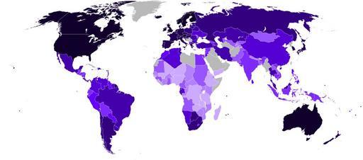 | Keywords: World map of countries by gross domestic product at purchasing power parity per capita in 2006 from the World Bank.svg A world map of countries by gross domestic product at purchasing power parity per capita in 2006 from the World Bank Own Saturday the 15th March 2008 Andrew Davis Bsrboy ˘ Data refers to the year 2006 http //siteresources worldbank org/DATASTATISTICS/Resources/GDP_PPP pdf Gross Domestic Product Purchasing Power Parity and http //siteresources worldbank org/DATASTATISTICS/Resources/POP pdf Population courtesy of the World Bank 14th September 2007 ˘ Data consists of 159 countries including Macau and Hong Kong ˘ Data map uses 10 shades of colour purple ˘ Data is divided into 9 equal groups and 1 semi-equal group of wealth See below ˘ Top 9 groups consist of 16 countries and the last group consists of 15 Group 1 1-16 1 Luxembourg - 69 203 2 United States - 44 155 3 Macau - 43 765 4 Norway - 43 576 5 Ireland - 41 930 6 Iceland - 38 880 7 Hong Kong - 38 065 8 Switzerland - 37 922 9 Denmark - 36 351 10 Netherlands - 36 220 11 Austria - 35 560 12 Australia - 35 492 13 Finland - 35 195 14 Sweden - 35 161 15 Canada - 35 030 16 United Kingdom - 34 983 Group 2 17-32 17 Belgium - 34 712 18 France - 33 408 19 Singapore - 32 749 20 Japan - 32 385 21 Germany - 31 744 22 Italy - 30 654 23 Spain - 28 55 24 New Zealand - 26 738 25 Greece - 25 076 26 Slovenia - 24 164 27 South Korea - 23 800 28 Czech Republic - 22 792 29 Portugal - 21 942 30 Hungary - 19 585 31 Malta - 19 126 32 Estonia - 18 379 Group 3 33-48 33 Slovakia - 17 826 34 Seychelles - 17 430 35 Trinidad and Tobago - 17 014 36 Equatorial Guinea - 16 548 37 Lithuania - 16 220 38 Latvia - 15 876 39 Argentina - 15 795 40 Poland - 15 445 41 Saint Kitts and Nevis - 14 604 42 Antigua and Barbuda - 14 190 43 Croatia - 14 072 44 Mauritius - 13 451 45 Botswana - 13 088 46 Chile - 12 655 47 Russia - 11 974 48 South Africa - 11 960 Group 4 49-64 49 Malaysia - 11 674 50 Mexico - 11 532 51 Uruguay - 11 451 52 Costa Rica - 11 160 53 Bulgaria - 10 128 54 Romania - 10 091 55 Thailand - 9 331 56 Turkey - 9 073 57 Brazil - 9 054 58 Belarus - 9 035 59 Tunisia - 8 976 60 Kazakhstan - 8 853 61 Dominican Republic - 8 813 62 Tonga - 8 598 63 Iran - 8 567 64 Grenada - 8 546 Group 5 65-80 65 Panama - 8 371 66 Suriname - 8 358 67 Namibia - 8 141 68 Colombia - 7 967 69 People ™s Republic of China - 7 660 70 Ukraine - 7 642 71 Republic of Macedonia - 7 612 72 Venezuela - 7 503 73 Saint Lucia - 7 500 74 Belize - 7 478 75 Algeria - 7 376 76 Micronesia - 7 306 77 Dominica - 7 028 78 Saint Vincent and the Grenadines - 6 983 79 Azerbaijan - 6 888 80 Gabon - 6 750 Group 6 81-96 81 Peru - 6 624 82 Samoa - 6 462 83 Fiji - 6 401 84 Cape Verde - 6 230 85 Jordan - 5 988 86 Armenia - 5 798 87 Albania - 5 732 88 Lebanon - 5 641 89 El Salvador - 5 525 90 Philippines - 5 473 91 Kiribati - 5 287 92 Swaziland - 5 138 93 Sri Lanka - 5 081 94 Paraguay - 5 54 95 Morocco - 5 028 96 Guyana - 4 864 Group 7 97-112 97 Guatemala - 4 802 98 Egypt - 4 664 99 Ecuador - 4 606 100 Jamaica - 4 520 101 Indonesia - 4 130 102 Nicaragua - 4 095 103 Syria - 4 046 104 India - 3 827 105 Georgia - 3 823 106 Honduras - 3 668 107 Lesotho - 3 592 108 Vanuatu - 3 563 109 Vietnam - 3 384 110 Cambodia - 3 041 111 Bolivia - 2 984 112 Papua New Guinea - 2 686 Group 8 113-128 113 Angola - 2 678 114 Ghana - 2 660 115 Pakistan - 2 553 116 Mauritania - 2 500 117 Moldova - 2 489 118 Guinea - 2 439 119 Cameroon - 2 406 120 Sudan - 2 372 121 Mongolia - 2 353 122 Laos - 2 329 123 Djibouti - 2 293 124 Uzbekistan - 2 247 125 Bangladesh - 2 217 126 Solomon Islands - 2 149 127 Kyrgyzstan - 2 024 128 The Gambia - 2 019 Group 9 129-144 129 Comoros - 2 016 130 Zimbabwe - 2 011 131 Senegal - 1 850 132 Haiti - 1 711 133 CĂ´te d ™Ivoire - 1 702 134 Nepal - 1 596 135 Chad - 1 551 136 Uganda - 1 519 137 Togo - 1 511 138 Tajikistan - 1 454 139 Mozambique - 1 345 140 Republic of the Congo - 1 342 141 Burkina Faso - 1 322 142 Kenya - 1 316 143 Central African Republic - 1 286 144 Rwanda - 1 287 Group 10 145-159 145 Ethiopia - 1 192 146 Benin - 1 175 147 Nigeria - 1 166 148 Zambia - 1 098 149 Eritrea - 1 096 150 Mali - 1 090 151 Yemen - 992 152 Madagascar - 972 153 Sierra Leone - 871 154 Guinea-Bissau - 862 155 Niger - 810 156 Democratic Republic of the Congo - 751 157 Tanzania - 751 158 Malawi - 731 159 Burundi - 729 SVG maps of the world without Antarctica Maps needing South Sudan political boundaries |