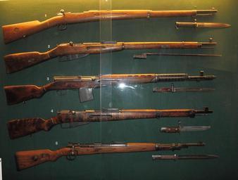 | Keywords: World War 2 rifles.JPG en Rifles and bayonets used by different participants in wars involving Finland between 1939 and 1945 From the top Swedish 6 5 mm Mauser m/96 purchased by Finland Soviet 7 62 mm Mosin-Nagant m/91-30 Soviet 7 62 mm Tokarev SVT-40 Finnish 7 62 mm infantry rifle m/39 Ukko-Pekka and German 7 92 mm Mauser m/98k Photographed in Mikkeli infantry museum fi Eri osapuolten Suomen sodissa 1939-1945 käyttämiä jalkaväenkiväärejä pistimineen Ylhäältä Suomeen ostettu ruotsalainen 6 5 mm Mauser m/96 neuvostoliittolainen 7 62 mm Mosin-Nagant m/91-30 neuvostoliittolainen 7 62 mm Tokarv SVT suomalainen 7 62 mm jalkaväenkivääri m/39 Ukko-Pekka ja saksalainen 7 92 mm Mauser m/98k Kuvattu Jalkaväkimuseossa own MKFI 2011-07-13 61 40 56 76 N 27 15 45 36 E region FI Mosin-Nagant rifle Mauser Karabiner 98K SVT-40 Rifles of Finland Swedish Mauser S84/98 III bayonet Bayonets Taken with Canon EOS 60D Taken with Canon EF-S 15-85mm F3 5-5 6 IS USM Finnish Mosin-Nagant variants ImageNote 1 4 63 3951 556 3959 3005 2 en Swedish 6 5 mm Mauser m/96 fi Ruotsalainen 6 5 mm Mauser m/96 ImageNoteEnd 1 ImageNote 2 4 619 3951 545 3959 3005 2 en Soviet 7 62 mm Mosin-Nagant m/91-30 fi Neuvostoliittolainen 7 62 mm Mosin-Nagant m/91-30 ImageNoteEnd 2 ImageNote 3 8 1164 3947 588 3959 3005 2 en Soviet 7 62 mm Tokarev SVT fi Neuvostoliittolainen 7 62 mm Tokarv SVT ImageNoteEnd 3 ImageNote 4 12 1751 3943 572 3959 3005 2 150px en Finnish 7 62 mm infantry rifle m/39 Ukko-Pekka fi Suomalainen 7 62 mm jalkaväenkivääri m/39 Ukko-Pekka ImageNoteEnd 4 ImageNote 5 12 2327 3943 576 3959 3005 2 en German 7 92 mm Mauser m/98k fi Saksalainen 7 92 mm Mauser m/98k ImageNoteEnd 5 Files by User MKFI Bayonets of Finland |