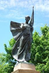 | Keywords: World War Memorial - Fitchburg, Massachusetts - DSC08563.JPG A loosely draped female figure holding a furled flag in her proper left hand stands atop a tall square base Her proper right hand is extended bestowing honor on those who died during World War I On her armored breast plate is the insignia of the United States As she walks her cloak is carried back by the breeze creating the effect of wings Inscription Herbert Adams MCMXXVIII On front of base TO THE MEMORY OF THOSE/WHO GAVE THEIR LIVES IN/THE WORLD WAR - 1914-1918/THE CITY OF FITCHBURG/DEDICATES THIS MONUMENT On bronze plaque west side of base These Gave Their Lives list of 63 who died during the war signed This artwork is the public domain because it was published in the United States between 1923 and 1963 with its copyright not renewed 2013-06-14 14 36 28 own Daderot PD-US-not renewed cc-zero World War Memorial Fitchburg Massachusetts Uploaded with UploadWizard |