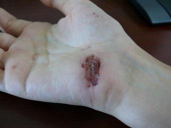 | Keywords: Wound on palm of hand - day 3.jpg Wound on palm of hand three days after falling off a bike onto concrete <br> Previous photos <br> Day 1 Image Wound on palm of hand jpg<br> Day 2 Image Wound on palm of hand - day 2 jpg<br> Following photos <br> Day 4 Image Wound on palm of hand - day 4 jpg<br> Day 5 Image Wound on palm of hand - day 5 jpg<br> Day 6 Image Wound on palm of hand - day 6 jpg<br> Day 7 Image Wound on palm of hand - day 7 jpg<br> Day 8 Image Wound on palm of hand - day 8 jpg<br> Day 9 Image Wound on palm of hand - day 9 jpg<br> Day 10 Image Wound on palm of hand - day 10 jpg<br> Day 11 Image Wound on palm of hand - day 11 jpg<br> Day 12 Image Wound on palm of hand - day 12 jpg<br> Day 13 Image Wound on palm of hand - day 13 jpg<br> Day 14 Image Wound on palm of hand - day 14 jpg<br> Day 15 Image Wound on palm of hand - day 15 jpg<br> Day 16 Image Wound on palm of hand - day 16 jpg<br> Day 17 Image Wound on palm of hand - day 17 jpg<br> Day 18 Image Wound on palm of hand - day 18 jpg<br> Day 19 Image Wound on palm of hand - day 19 jpg<br> Day 20 Image Wound on palm of hand - day 20 jpg Own 2008-03-18 Arria Belli public domain Wound healing Wounds on the wrist and hand Diseases and disorders of the hands |