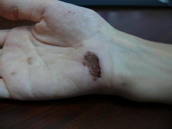 | Keywords: Wound on palm of hand - day 5.jpg Wound on palm of hand five days after falling off a bike onto concrete <br> Previous photos <br> Day 1 Image Wound on palm of hand jpg<br> Day 2 Image Wound on palm of hand - day 2 jpg<br> Day 3 Image Wound on palm of hand - day 3 jpg<br> Day 4 Image Wound on palm of hand - day 4 jpg<br> Following photos <br> Day 6 Image Wound on palm of hand - day 6 jpg<br> Day 7 Image Wound on palm of hand - day 7 jpg<br> Day 8 Image Wound on palm of hand - day 8 jpg<br> Day 9 Image Wound on palm of hand - day 9 jpg<br> Day 10 Image Wound on palm of hand - day 10 jpg<br> Day 11 Image Wound on palm of hand - day 11 jpg<br> Day 12 Image Wound on palm of hand - day 12 jpg<br> Day 13 Image Wound on palm of hand - day 13 jpg<br> Day 14 Image Wound on palm of hand - day 14 jpg<br> Day 15 Image Wound on palm of hand - day 15 jpg<br> Day 16 Image Wound on palm of hand - day 16 jpg<br> Day 17 Image Wound on palm of hand - day 17 jpg<br> Day 18 Image Wound on palm of hand - day 18 jpg<br> Day 19 Image Wound on palm of hand - day 19 jpg<br> Day 20 Image Wound on palm of hand - day 20 jpg Own 2008-03-20 Arria Belli public domain Wound healing Wounds on the wrist and hand Diseases and disorders of the hands Palmar creases |