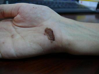| Keywords: Wound on palm of hand - day 8.jpg Wound on palm of hand eight days after falling off a bike onto concrete <br> Previous photos <br> Day 1 Image Wound on palm of hand jpg<br> Day 2 Image Wound on palm of hand - day 2 jpg<br> Day 3 Image Wound on palm of hand - day 3 jpg<br> Day 4 Image Wound on palm of hand - day 4 jpg<br> Day 5 Image Wound on palm of hand - day 5 jpg<br> Day 6 Image Wound on palm of hand - day 6 jpg<br> Day 7 Image Wound on palm of hand - day 7 jpg<br> Following photos <br> Day 9 Image Wound on palm of hand - day 9 jpg<br> Day 10 Image Wound on palm of hand - day 10 jpg<br> Day 11 Image Wound on palm of hand - day 11 jpg<br> Day 12 Image Wound on palm of hand - day 12 jpg<br> Day 13 Image Wound on palm of hand - day 13 jpg<br> Day 14 Image Wound on palm of hand - day 14 jpg<br> Day 15 Image Wound on palm of hand - day 15 jpg<br> Day 16 Image Wound on palm of hand - day 16 jpg<br> Day 17 Image Wound on palm of hand - day 17 jpg<br> Day 18 Image Wound on palm of hand - day 18 jpg<br> Day 19 Image Wound on palm of hand - day 19 jpg<br> Day 20 Image Wound on palm of hand - day 20 jpg Own 2008-03-23 Arria Belli public domain Wound healing Wounds on the wrist and hand Diseases and disorders of the hands |