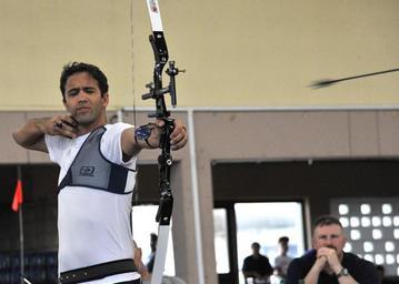 | Keywords: Wounded Warrior Pacific Trials 121113-N-IT566-037.jpg en Electrician's Mate 2nd Class Ret Josh Rosenberg shoots at a target during archery practice at the Wounded Warrior Pacific Trials at Joint Base Pearl Harbor-Hickam Nearly 50 seriously wounded ill and injured sailors and Coast Guardsmen from across the country are going head-to-head in archery cycling track and field shooting sitting volleyball swimming and wheel chair basketball for one of 35 places on the 2013 Warrior Games Navy-Coast Guard team U S Navy Photo by Mass Communication Specialist 2nd Class David Kolmel 2012-11-15 Petty Officer 2nd Class David Kolmel https //www dvidshub net/image/783580 121113-N-IT566-037 2012-11-15 21 52 PEARL HARBOR HI US PD-USGov-Military-Navy 2012 in Pearl Harbor Sports at Pearl Harbor Archery in the United States Wounded Warrior 2012 Images from DoD uploaded by Fæ |